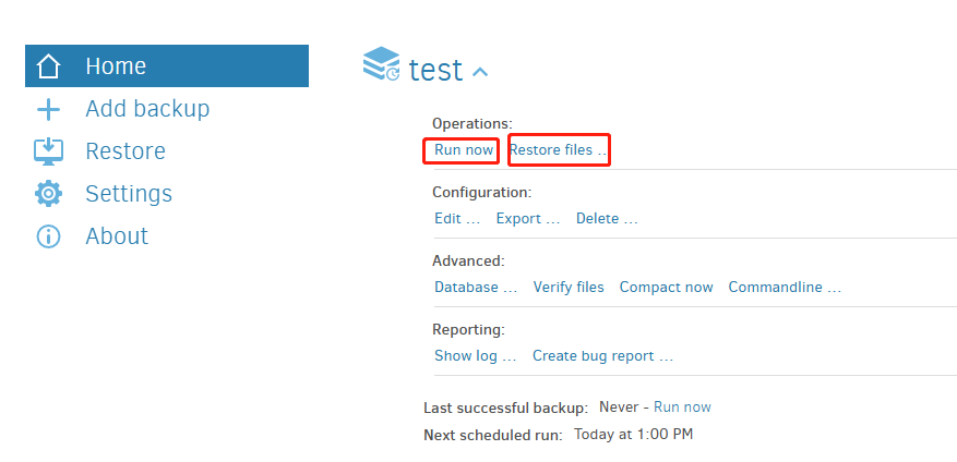 2. Local browser to access Duplicati console, and set admin password by Settings > Access to user interface