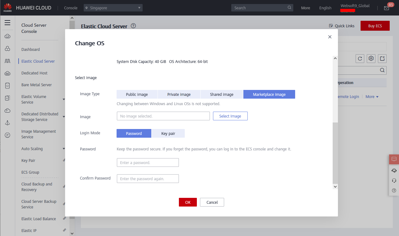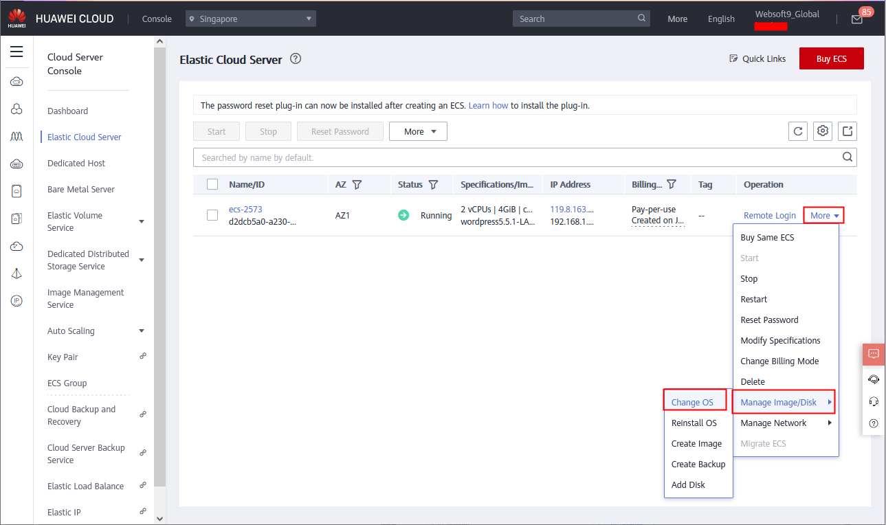1. Login to HUAWEICLOUD Console and enter to ECS console page